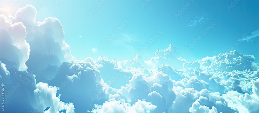 Wall mural serene and open canvas of a vivid azure sky with fluffy white clouds dancing gracefully is a peacefu - Wall murals Wall mural serene and open canvas of a vivid azure sky with fluffy white clouds dancing gracefully is a peacefu - Wall murals