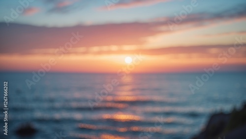 Wall mural : Serene blurred sunset over ocean waves with soft colors and copy space for text use