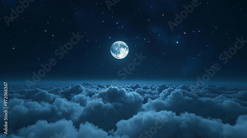 Wall mural serene night sky with a bright full moon glowing above thick clouds, casting a peaceful light over t - Wall murals Wall mural serene night sky with a bright full moon glowing above thick clouds, casting a peaceful light over t - Wall murals