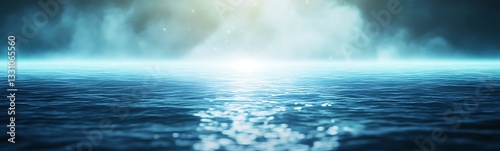 The watermark will not be included on Wall mural.: Serene ocean view with soft light reflecting on the water surface and mist in the distance -