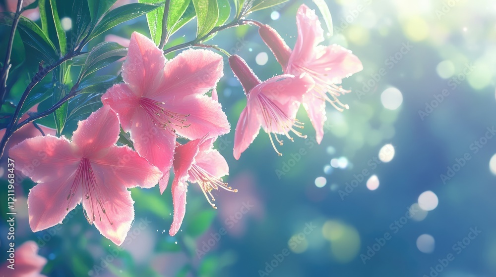 Wall mural serene pink orchids blooming in a tropical setting with soft bokeh background and gentle light creat - Wall murals Wall mural serene pink orchids blooming in a tropical setting with soft bokeh background and gentle light creat - Wall murals