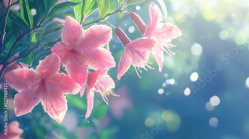 The watermark will not be included on Wall mural.: Serene pink orchids blooming in a tropical setting with soft bokeh background and gentle light creat