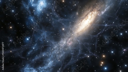 Wall mural serene view of light years of cosmic web structure showcasing the interconnection of galaxies and th - Wall murals Wall mural serene view of light years of cosmic web structure showcasing the interconnection of galaxies and th - Wall murals
