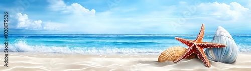 Wall mural : Serenity at the shore a beautiful coastal scene with shells and waves