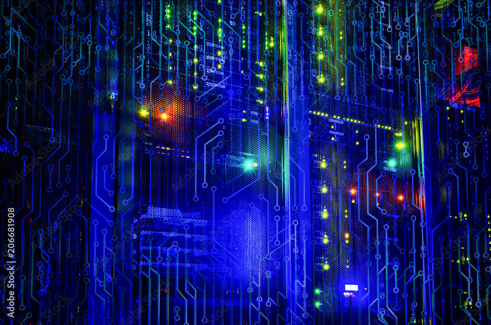 Wall mural series mainframe in a futuristic representation of a matrix code with composition of information tec