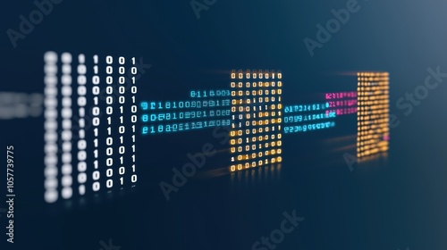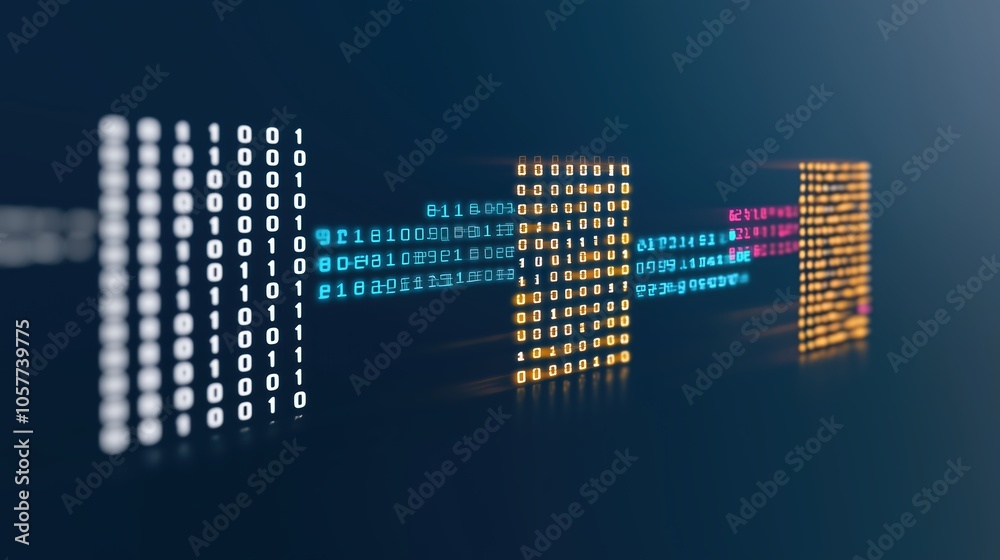The watermark will not be included on Wall mural.: Series of binary numbers are displayed in a row, with some of them being orange and some being white