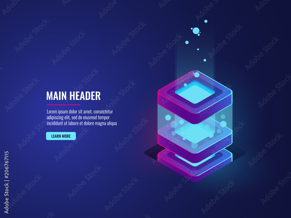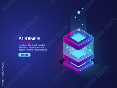Wall mural server room isometric vector, data center and database icon, bigdata processing and computing, vpn t