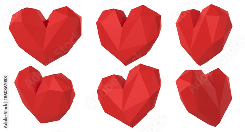 Wall mural set 3d red heart object isolated on white background for decoration. 3d render illustation.