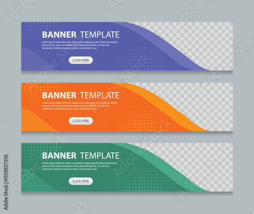 Wall mural set abstract horizontal web banner design background template. three color style. suitable for web a
