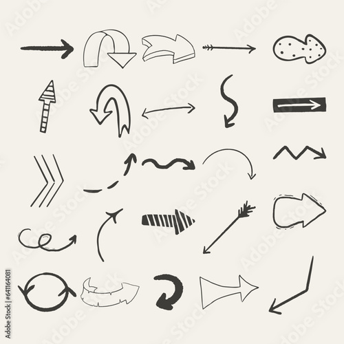 The watermark will not be included on Wall mural.: Set arrow pointer ink lines, textured shapes hand drawn decorative elements in doodle style isolated