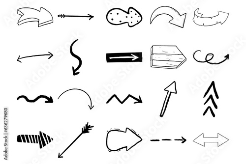 The watermark will not be included on Wall mural.: Set arrow pointer ink lines, textured shapes hand drawn decorative elements in doodle style isolated