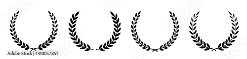 Wall mural : Set black silhouette circular laurel foliate, wheat and oak wreaths depicting an award, achievement,