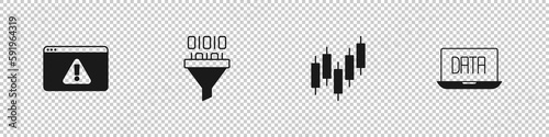 The watermark will not be included on Wall mural.: Set browser with exclamation mark, binary code, stocks market and data analysis icon - vector
