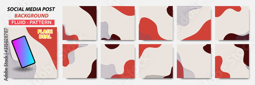 Wall mural : Set collection of square banner layout in red color combination with dots line pattern