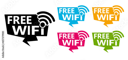 The watermark will not be included on Wall mural.: Set collections free wifi trendy colorful icon sign - wireless network connection labels design templ