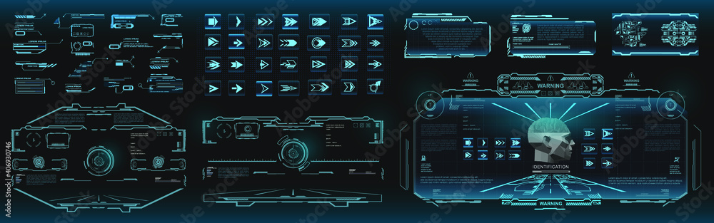 Set custom holographic screens with data and information in hud ui style - futuristic set of screen eWall mural