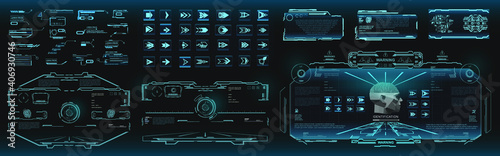 Wall mural set custom holographic screens with data and information in hud ui style. futuristic set of screen e