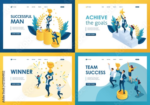 The watermark will not be included on Wall mural.: Set design web page templates of achieving goal - modern illustration concepts for website and mobile
