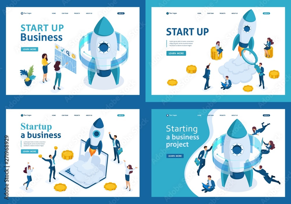 Wall mural : Set design web page templates of business start up - modern illustration concepts for website and mob