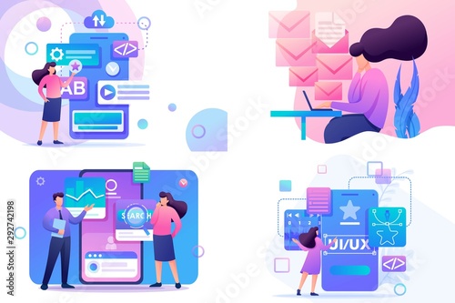 The watermark will not be included on Wall mural.: Set flat 2d concepts mobile app, ui ux design, super testing, send message - for concept for web desi