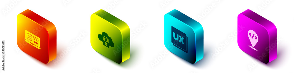 Set isometric ui or ux design, cloud computing lock, and front end development icon - vector - Wall mural