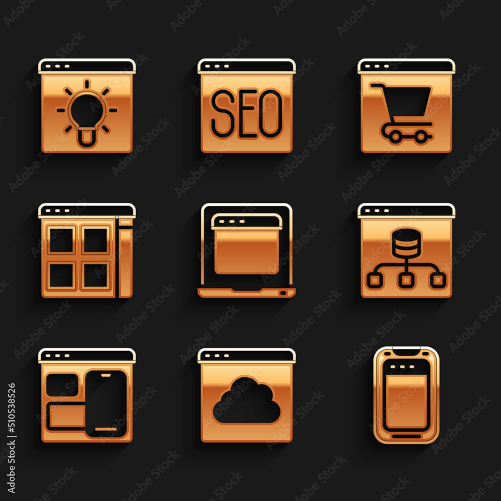 The watermark will not be included on Wall mural.: Set laptop with browser window, cloud technology data transfer, mobile phone, server, data, web deve