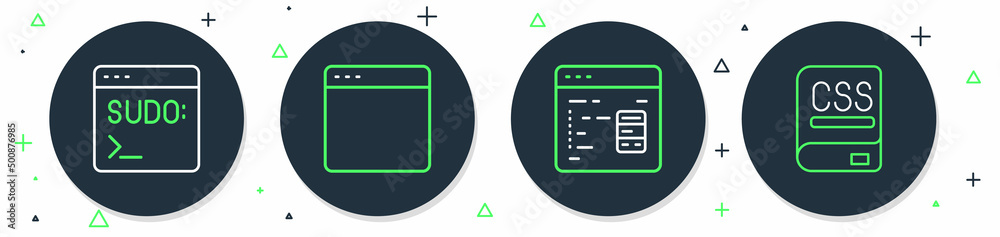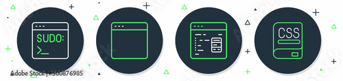The watermark will not be included on Wall mural.: Set line browser window, software, code terminal and books about programming icon - vector