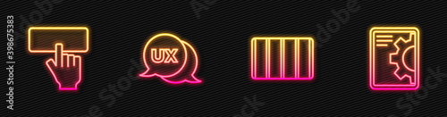 Wall mural set line color palette guide, keyboard, ui ux design and web development. glowing neon icon. vector.