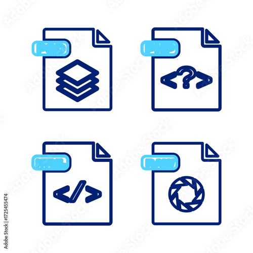 Set line raw file document, html, php and psd icon - vectorWall mural