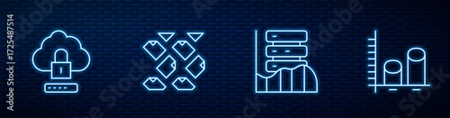 The watermark will not be included on Wall mural.: Set line server, data, web hosting, cloud computing lock, stream and analysis - glowing neon icon on
