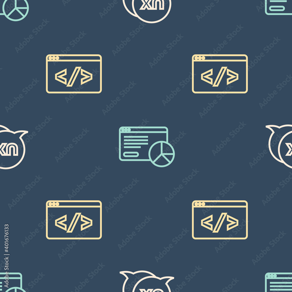 The watermark will not be included on Wall mural.: Set line ui or ux design, front end development and website statistic on seamless pattern - vector -