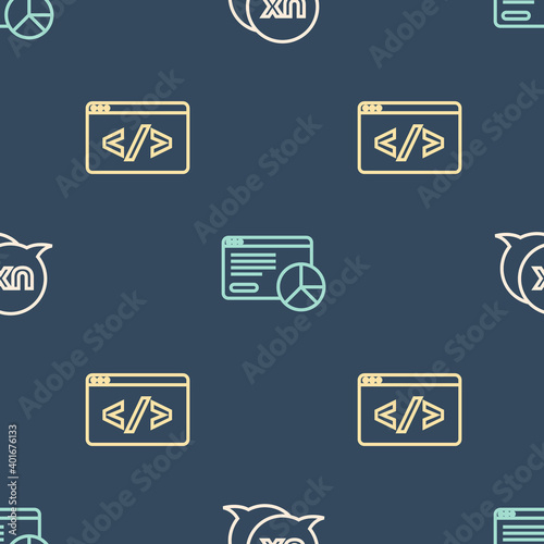 Wall mural : Set line ui or ux design, front end development and website statistic on seamless pattern - vector -