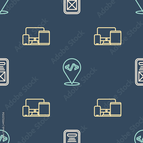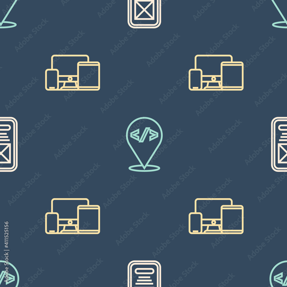 Set line ui or ux design, monitor, mobile, tablet and front end development on seamless pattern - vecWall mural
