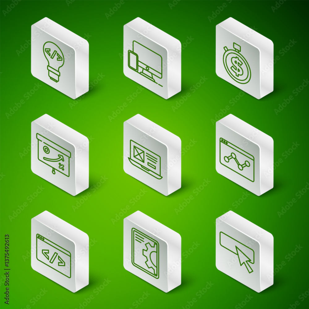 The watermark will not be included on Wall mural.: Set line ui or ux design, web development, front end, planning strategy concept, monitor and mobile,