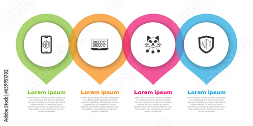 The watermark will not be included on Wall mural.: Set mobile with art store app, binary code, nft digital crypto and shield - business infographic temp