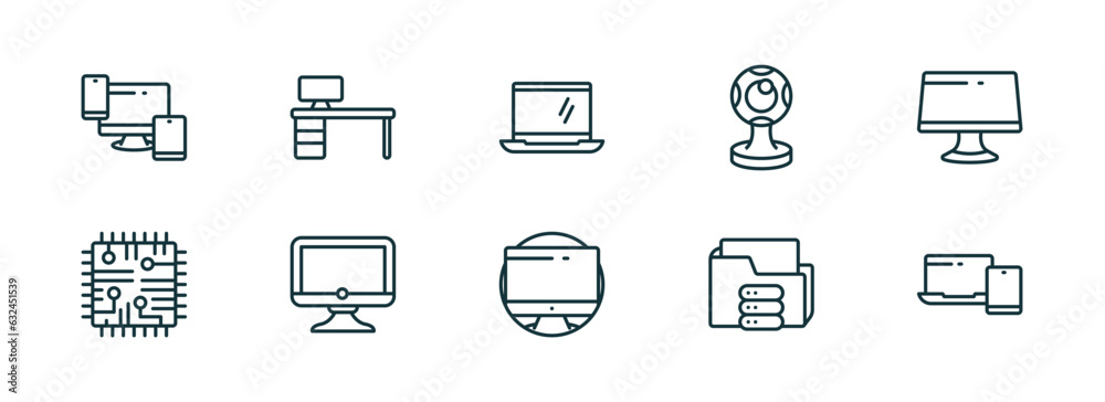 Set of 10 linear icons from computer concept - outline icons such as responsive de, boss office, openWall mural