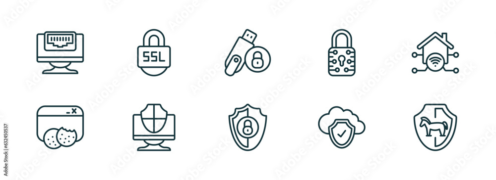 Set of 10 linear icons from internet security concept - outline icons such as ethernet, ssl, pendriveWall mural