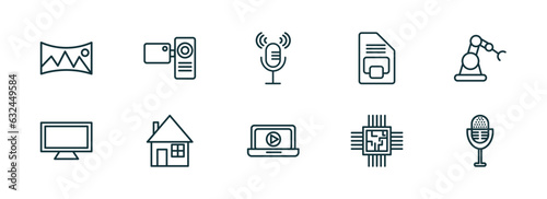 Set of 10 linear icons from technology concept - outline icons such as panoramic, video camera front Wall mural