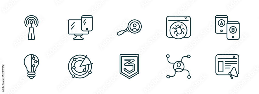Set of 10 linear icons from technology concept - outline icons such as reach, responsive web de, userWall mural