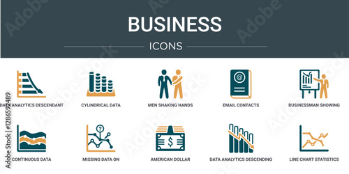 Wall mural set of 10 outline web business icons such as data analytics descendant graphic, cylindrical data gra
