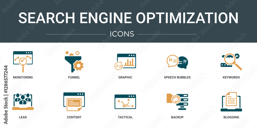 Wall mural set of 10 outline web search engine optimization icons such as monitoring, funnel, graphic, speech b - Wall murals Wall mural set of 10 outline web search engine optimization icons such as monitoring, funnel, graphic, speech b - Wall murals