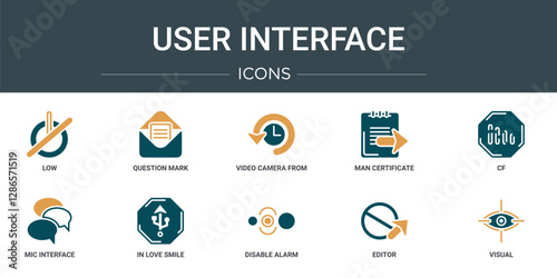 Wall mural : Set of 10 outline web user interface icons such as low, question mark, video camera from side view,