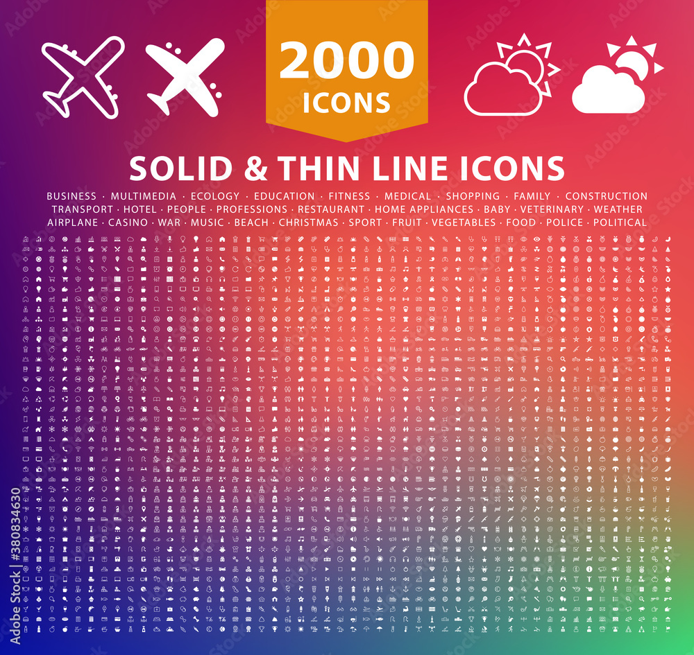Wall mural set of 2000 high quality thin line and solid icons . isolated vector elements - Wall murals Wall mural set of 2000 high quality thin line and solid icons . isolated vector elements - Wall murals