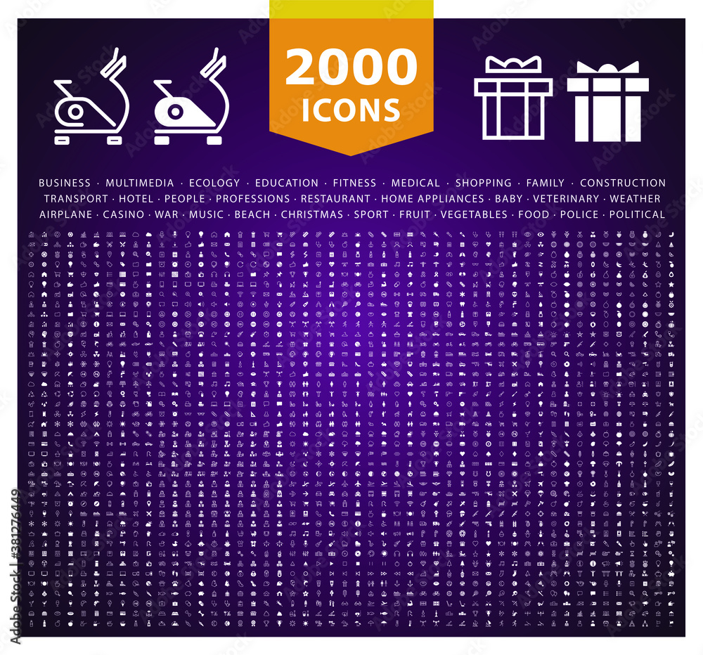 The watermark will not be included on Wall mural.: Set of 2000 high quality thin line icons - isolated vector elements