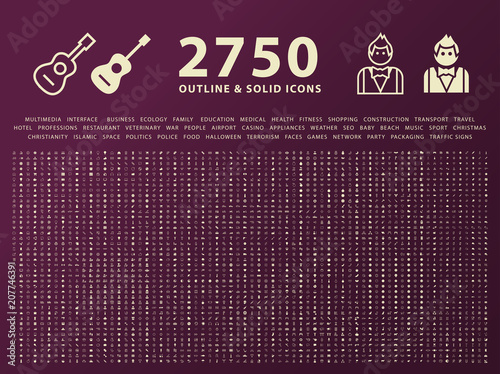 Wall mural set of 2750 outline and solid icons on dark background . vector isolated elements
