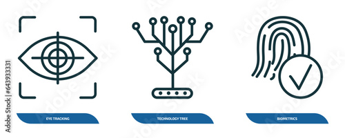 Wall mural set of 3 linear icons from artificial intellegence concept. outline icons such as eye tracking, tech