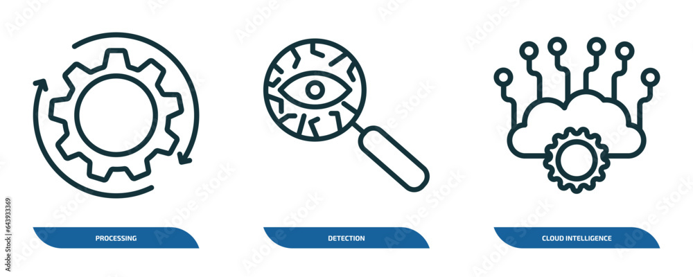 Wall mural : Set of 3 linear icons from artificial intellegence concept - outline icons such as processing, detect
