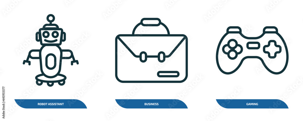 Wall mural set of 3 linear icons from artificial intellegence concept. outline icons such as robot assistant, b - Wall murals Wall mural set of 3 linear icons from artificial intellegence concept. outline icons such as robot assistant, b - Wall murals