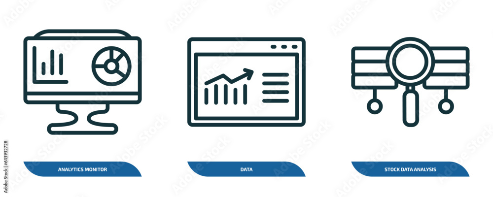 The watermark will not be included on Wall mural.: Set of 3 linear icons from business and analytics concept - outline icons such as analytics monitor,