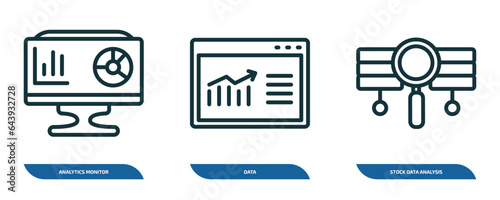 Wall mural : Set of 3 linear icons from business and analytics concept - outline icons such as analytics monitor,